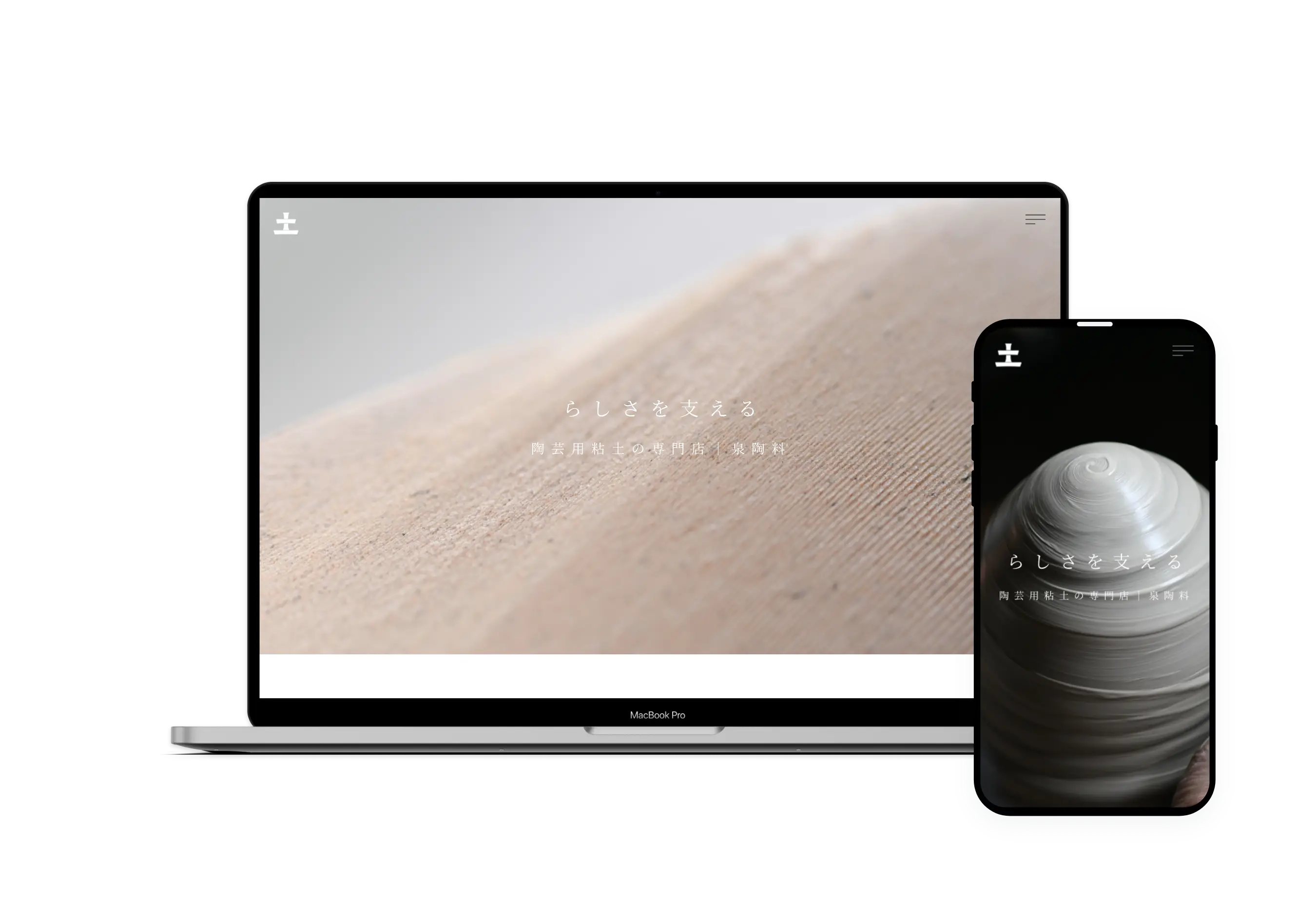 京都の陶芸用陶土製造会社・泉陶料様のサイトリニューアルに際してデザイン・構築を行いました。作り手を支える陶土製造会社様の理念や想いが丁寧に届けられるよう「らしさを支える」というタグラインを作成。合わせて商品となる陶芸用粘土の美しい表情にフォーカスしたメインビジュアルや商品カットのスタイリング・ディレクションを行いました。