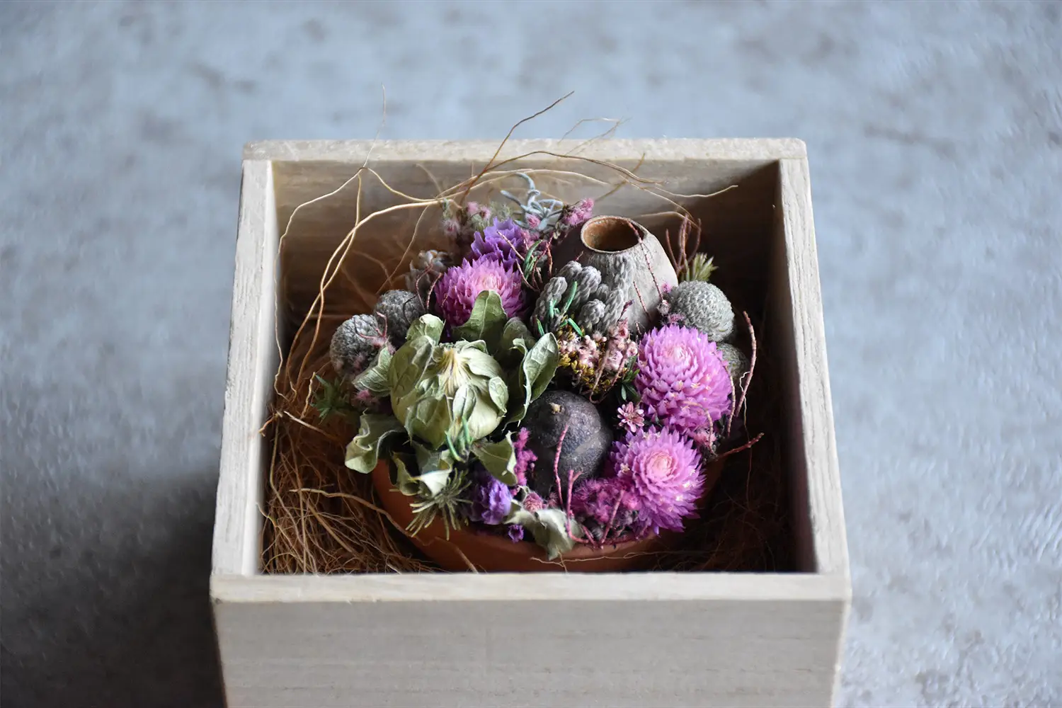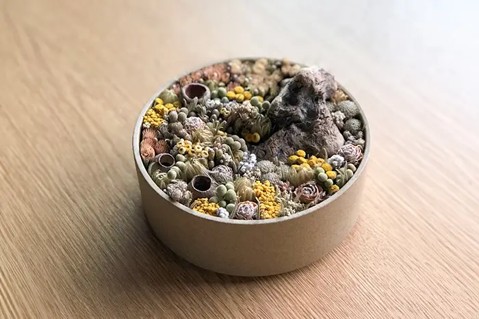 移ろいゆくものに宿る、静かな強さを見出したい方へ。「枯れる=終わり」という固定概念を書き換え、手元で姿を変え続ける自然の真実を、豊かな変容として愉しむ心の余白を届けます。それは、完成された美を消費するのではなく、美が生まれるプロセスそのものに立ち会い、時間の重なりを愛おしむための、新しい鑑賞のあり方です。
