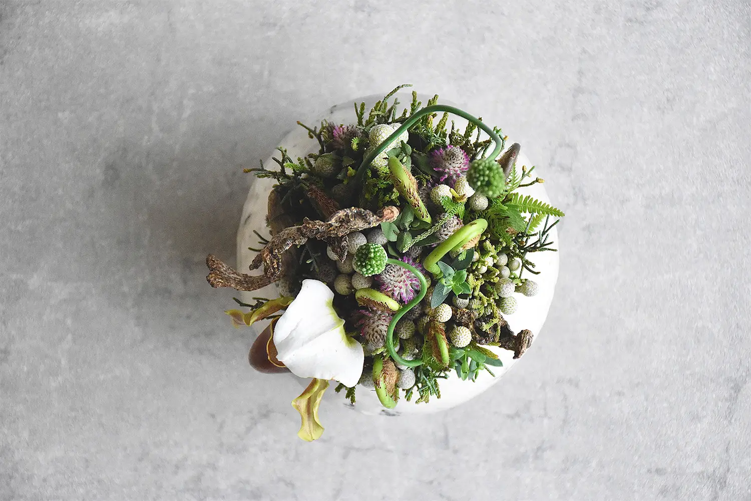 「想いを伝える」という役割からあえて植物を解放し、感情を言語化せずに置いておくための「場」として再定義しました。祝福や哀悼といった強い意味を背負わせるのではなく、意味を与えすぎないこと。その不確かな「余白」を価値とします。書かれる前の真っ白な紙のように、何も語らない植物の佇まいを提案します。