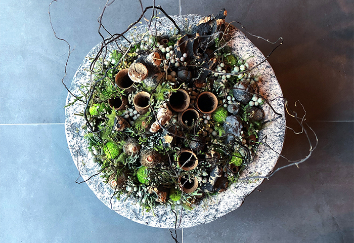 韓国・ソウルに新規オープンしたレストランにて、空間装飾とノンアルコールのペアリングコースの企画・開発を含むトータルスタイリングを担当しました。オープンカウンターを舞台に、植物の湧き上がる生命力をテーマとしたフラワーオブジェを制作。ペアリングコースは「アジアンフィロソフィー」をキーワードに、五行の思想や土地の文化をベースに構成し、味覚・香り・ビジュアルのバランスを大切にしながら、植物と調和した体験として仕上げました。