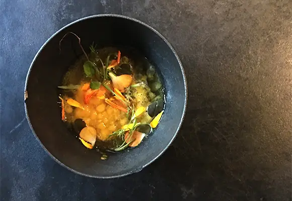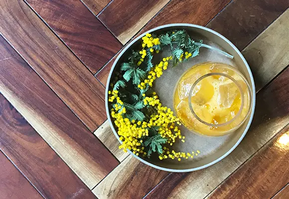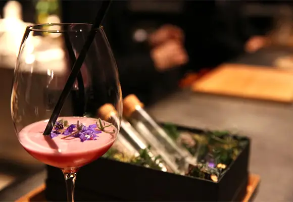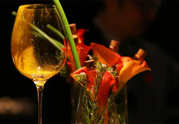コース料理に寄り添う飲料ペアリングコースの開発。コンセプトは、HERBARIUM ハーバリウム(植物標本)×FLORILEGE フロリレージュ(詞華集)=FLORILEGIUM フロリレジウム(花譜・コレクション)。店名の意味合いでもある美しい詩の選集のように、テーマやストーリー性を組み込みながら、料理のように飲料を仕立て、五感を通して味わうコースを制作しました。