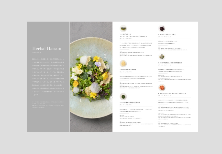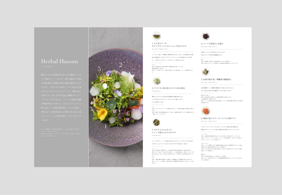 体を温め整え、動き出す、美しく満たされる食事をコンセプトに「野菜」「ハーブ」「漢方」「ヴィーガン」「花」などのキーワードを散りばめながら、懐石の八寸から着想を得て自然由来のイメージでスタイリングをご提案。neutral北嶋氏をお迎えし具体的なレシピ開発を実施。一つ一つのハーブを感じながら効能を身体に取り入れるように、お野菜を中心にそれぞれのハーブと漢方由来の食材も組み合わせた素敵な商品に仕上げて頂きました。